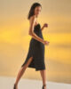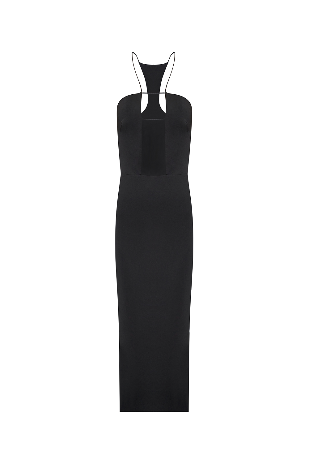 Halter neck • Black Color • Zero Sleeve Pencil dress. • Designed to fit the body perfectly • Slim-fit midi jersey dress • Lined.